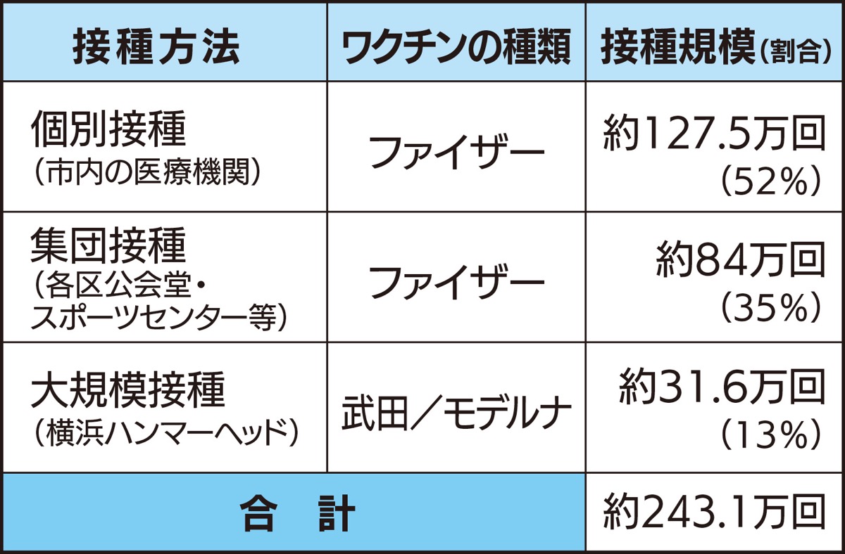 一方、市の予約専用サイト・予約センターで受け付ける個別接種、各公会堂やスポーツセンターなどの集団接種、横浜ハンマーヘッドでの大規模接種については、50歳以上が11日から予約開始。40歳以上は16日午前9時から、39歳以下の全対象年齢は23日午前9時から予約を受け付ける。
