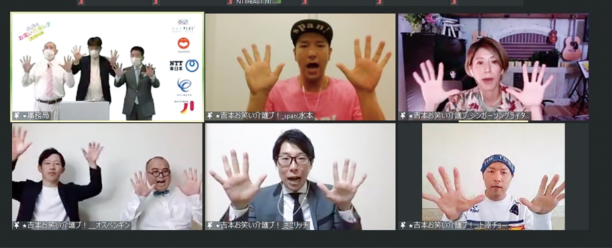 吉本興業やNTT東日本など5者が9月22日、「よしもとお笑い介護レク〜オンライン〜」のサービス提供を開始した。全国の介護施設とオンラインで繋ぎ、よしもとの芸人がオンラインで笑いを届けるサービス。