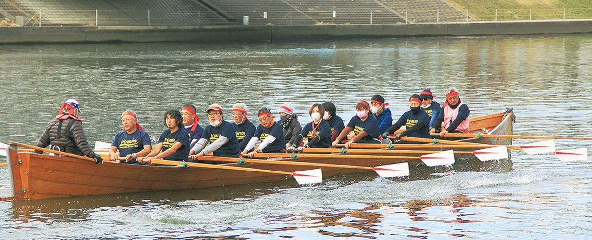 この大会は、同協会が企画する4大大会の一つ。漕艇場から鷹野大橋でターンし、約6・5Kmを漕ぐロングレース。4人、8人漕ぎに加え、日本でも鶴見川だけという14人漕ぎのレースもある貴重な大会だ。
