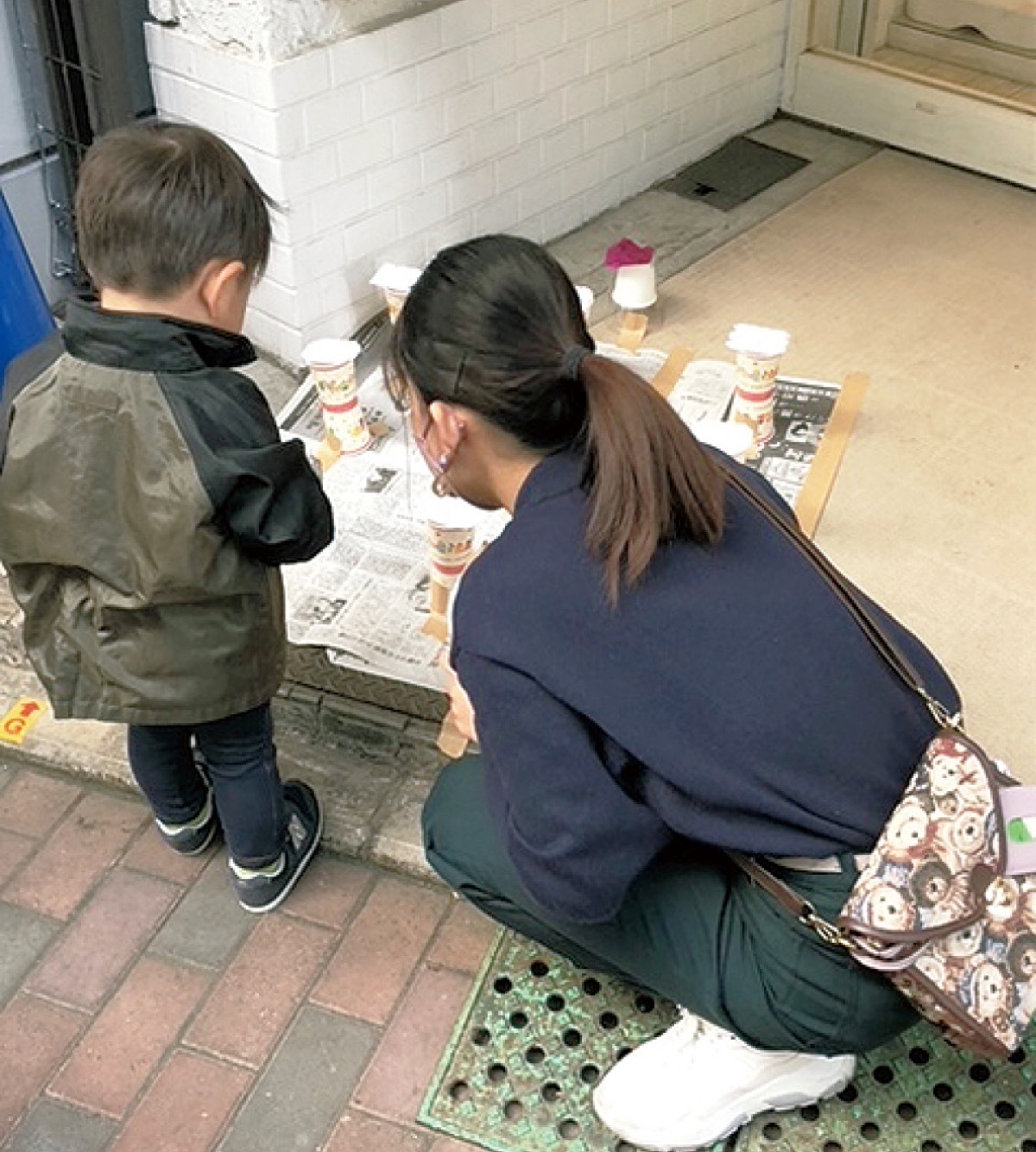 当日は、輪投げやお菓子釣り、くじ引きなどを用意。参加した子どもたちみんなで一つのものを作りたいと、クリスマスのオーナメント制作も企画した。笹方さんの卒園した保育園や通りすがりの親子など30人以上が立ち寄り、盛況だった。子どもたちは「もう一回やりたい」などと夢中になっていた。