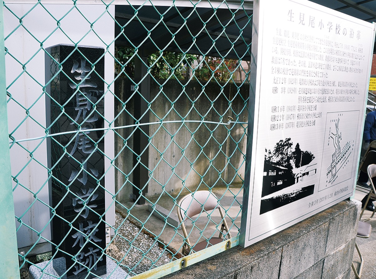 東台小学校の同窓生を中心に、前身となる「生見尾小学校」の名を残そうと進められていた石碑と案内板がこのほど完成し、12月10日、関係者らを集めた完成披露会が開かれた。同窓会は「足かけ7年の悲願。形にできて良かった」と喜び、校外学習などにも使用して欲しいと望んでいる。