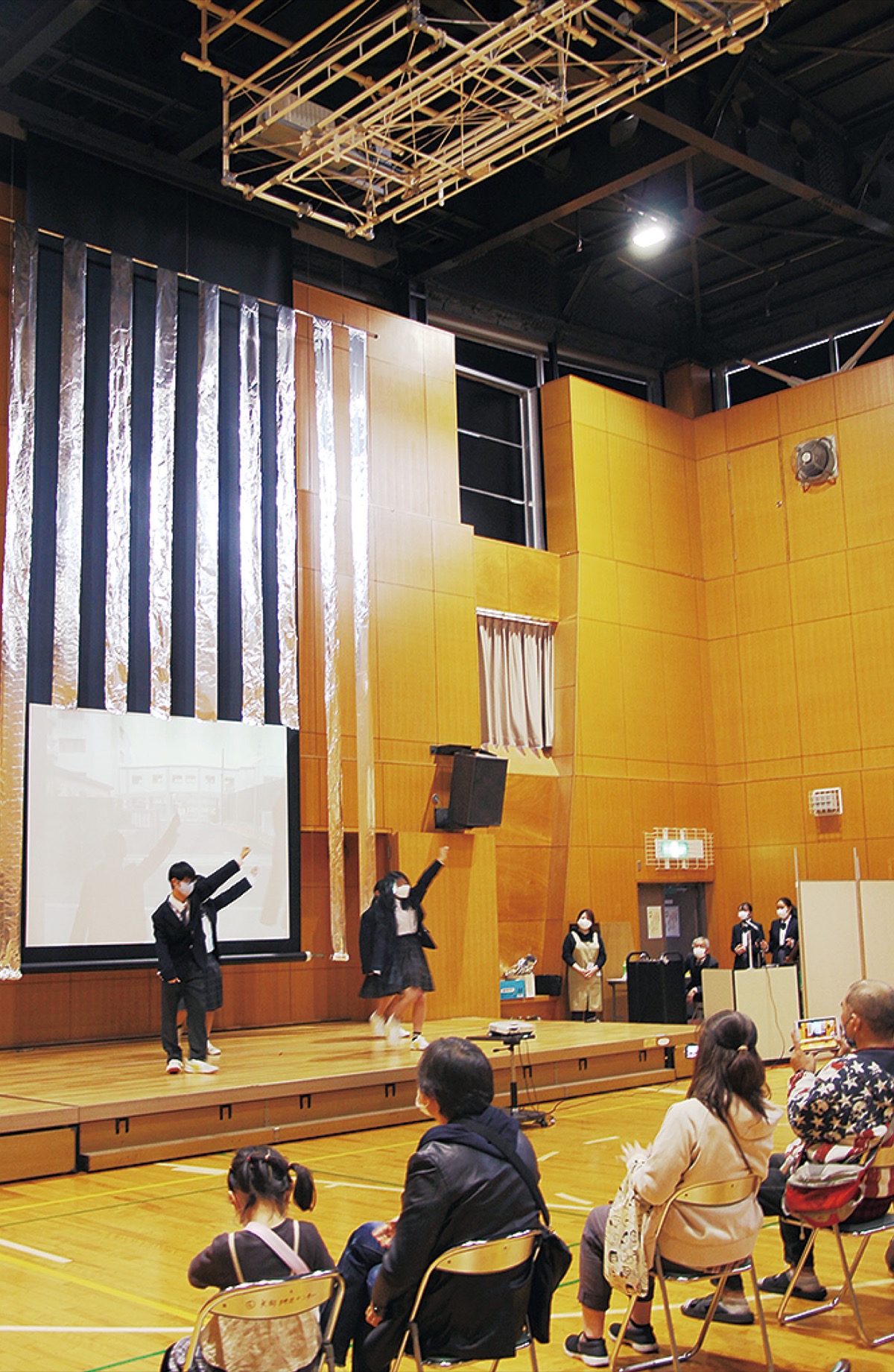 12日に行われたダンスフェスタ。矢向中学校の吹奏楽部の演奏から始まり、同館で練習するサークルなどのほか、鶴見エイサー潮風などの発表もあり、会場を盛り上げた。矢向地区センターの小島明館長は「行事が中止になり辛いこともあったと思うが、逆に気付いたこともたくさんあるはず」と出演した生徒らに呼びかけた。