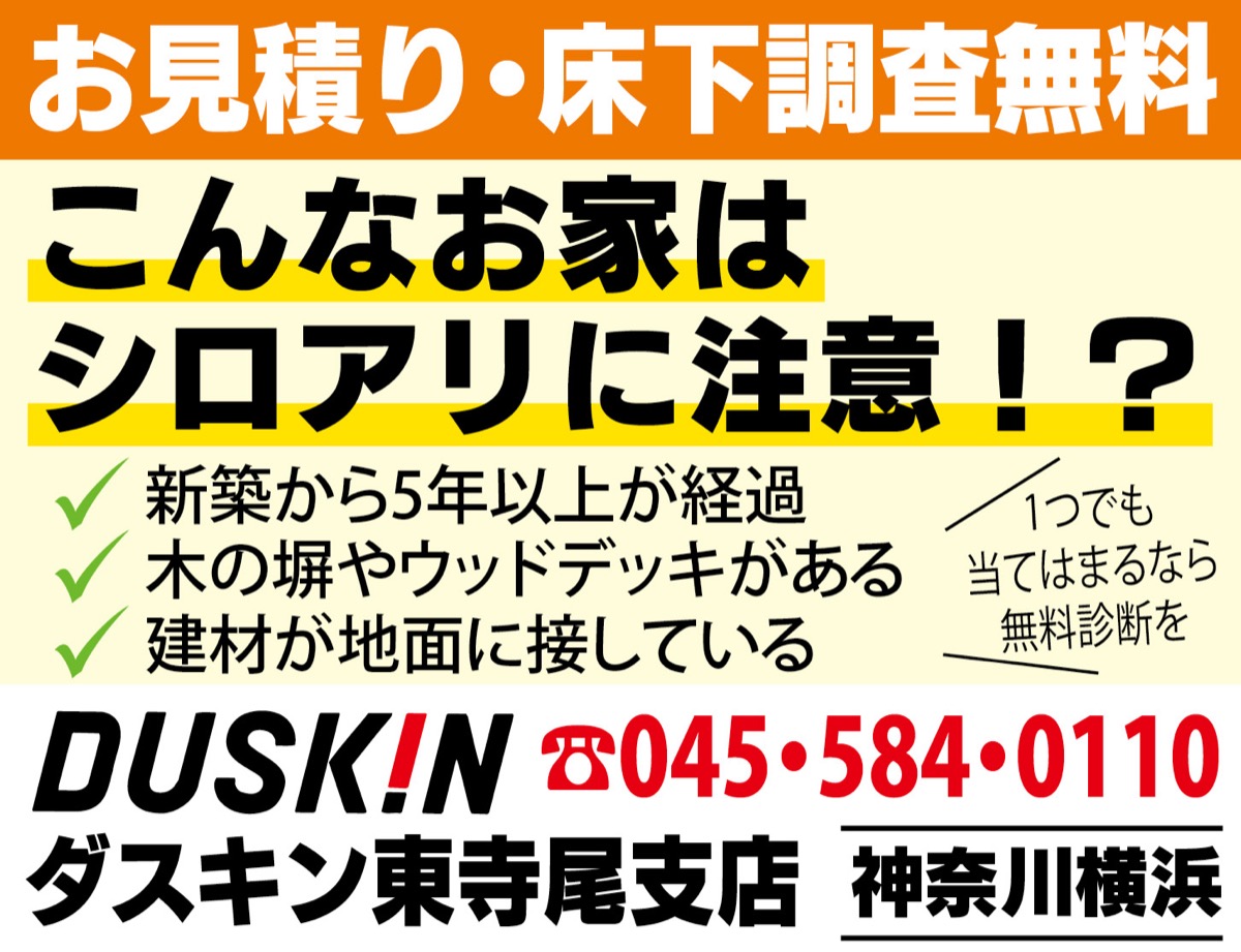 家の見えない部分の木材を食い荒らすシロアリ。5月連休明けから巣立ちすることに合わせ、ダスキンがお得なキャンペーンを実施する(詳細は【電話】で問い合わせを)。