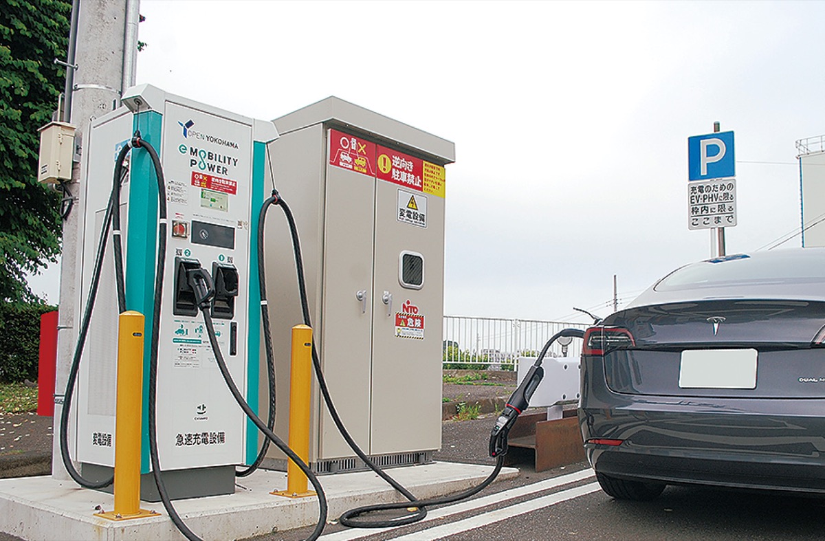 2050年までの脱炭素化実現に取り組む横浜市。取り組みの一環として市は昨年6月から、全国初となる、公道上にEV用充電器を設置した実証実験を青葉区で行っている。国内でも30年代にガソリン車やディーゼル車の新車販売が禁止になるともいわれる中、市はEV普及をインフラ面から後押したい考えだ。