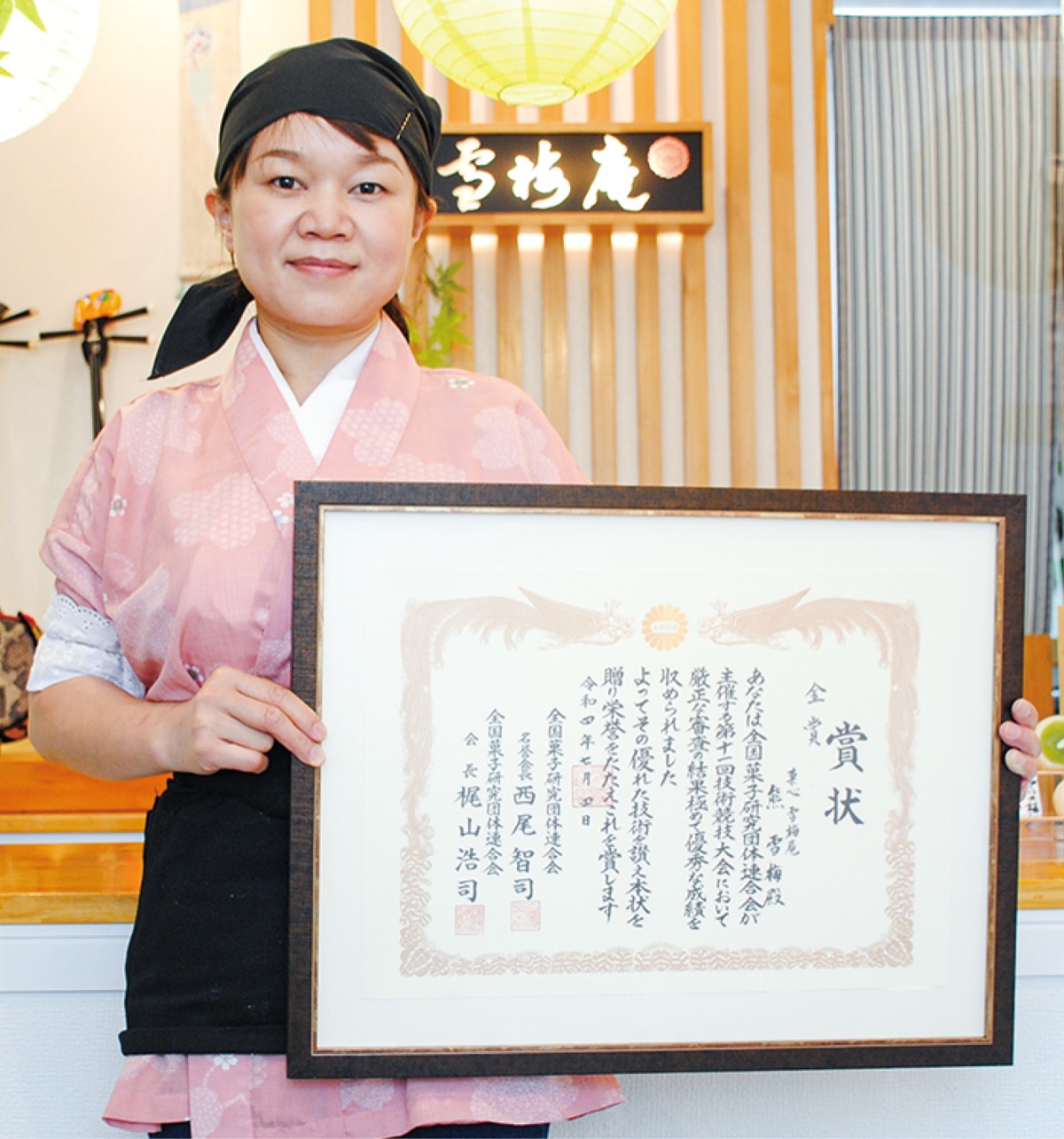 生麦の「菓心 雪梅庵」の熊雪梅(ゆう せつばい)さん(38)が、全国菓子研究団体連合会主催の「第11回技術競技大会」で金賞を初めて受賞した。和菓子を学ぶために中国から来日して12年半。熊さんは「今後もさらに腕を磨き、皆さんに愛される和菓子を作っていきたい」と喜びを語った。