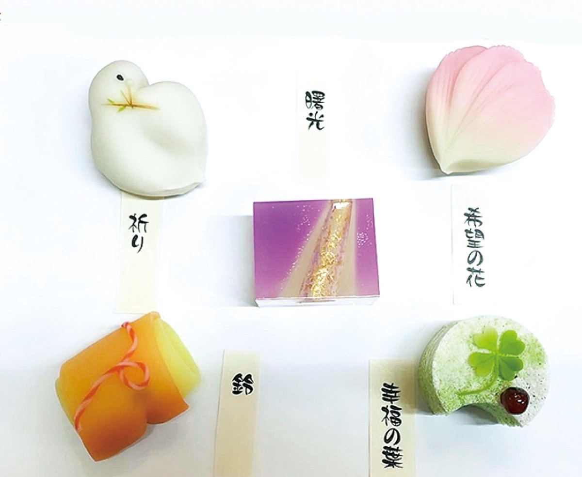 熊さんは今回が4年ぶり2度目の挑戦。材料や色の異なる「五つ盛」で技術はもちろん、独創性も重視される同部門。熊さんは、菓子の真ん中に空洞を開け、金粉を振りかけて夜明けに差してくる太陽の光を表す「曙光」を表現したものや、平和の象徴のハトをイメージした上生菓子などを出品。グランプリに次ぐ金賞受賞について「全国の有名なお店の人も出場する中での受賞は今でも信じられない」と笑顔で喜びを語った。