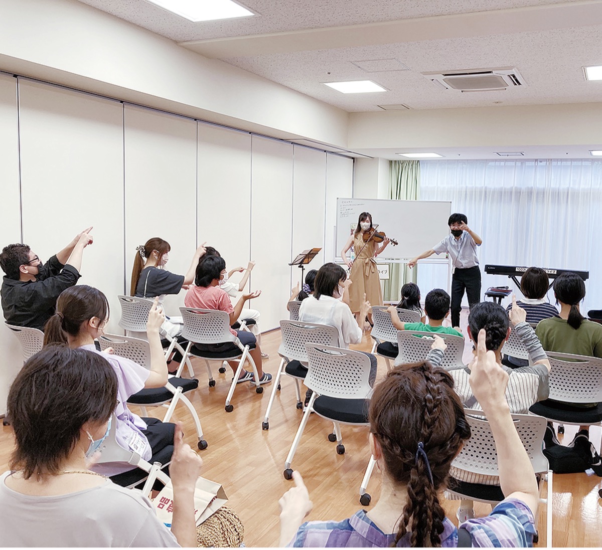 当日は、子どもたちの心のケアを目的に無料で演奏家を派遣する一般財団法人100万人のクラシックライブが協力。ピアニストの高見秀太朗さんとバイオリニストの柏原悠さんがエルガーの「愛のあいさつ」などを披露。本物のクラシックの音色に参加した約20人の子どもと親たちが聴き入っていた。