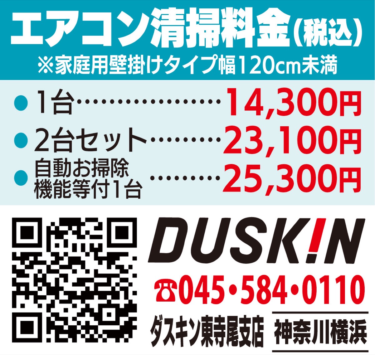 約50年の技術で「プロは違う」と評判のダスキンハウスクリーニング。エアコンは使用頻度の多い部屋やペットのいる家庭は1年をめどに掃除を勧める。自動清掃機能はフィルターだけなので、掃除不要は勘違いとか。「吹出口に黒カビ」「カビ臭い」などは健康を害する恐れもあり要注意。今なら「タウン見た」で抗菌コート1台分(2100円相当)半額に。