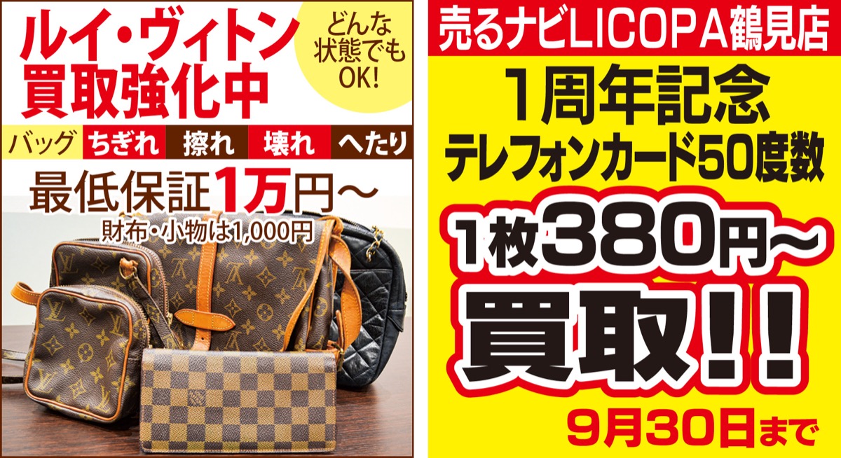 買取専門店「売るナビLICOPA鶴見店」はオープン1周年記念として、「テレフォンカード50度数」の買取を強化。380円から買取でプレミア付きは高い査定に。9月末まで、お早めに。