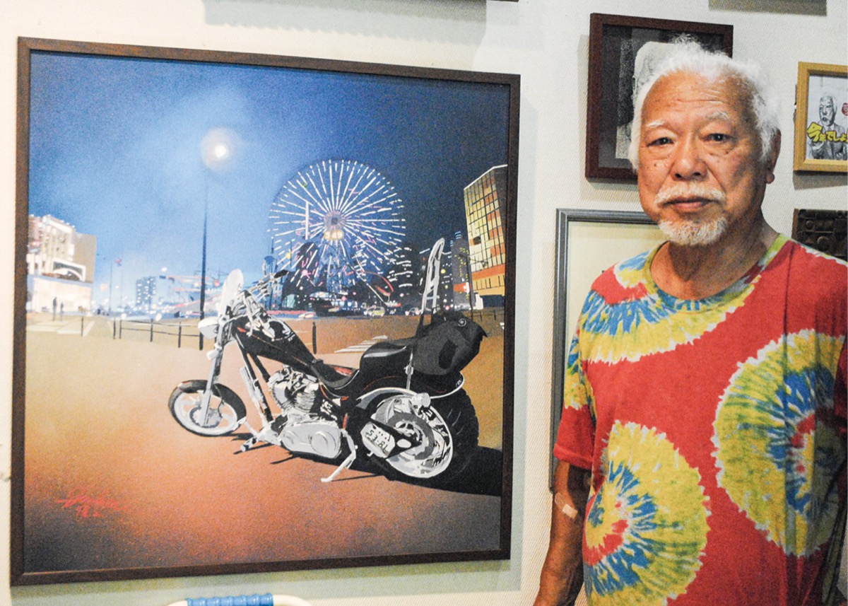 家庭用ペンキスプレーで鶴見など横浜の風景を描く郷右近健二さん=馬場在住=が10月18日から23日までサブウェイギャラリーM=西区みなとみらい3の5=で「郷右近健二・近藤仁志の二人展」を開く。各日午前10時から午後6時まで。
