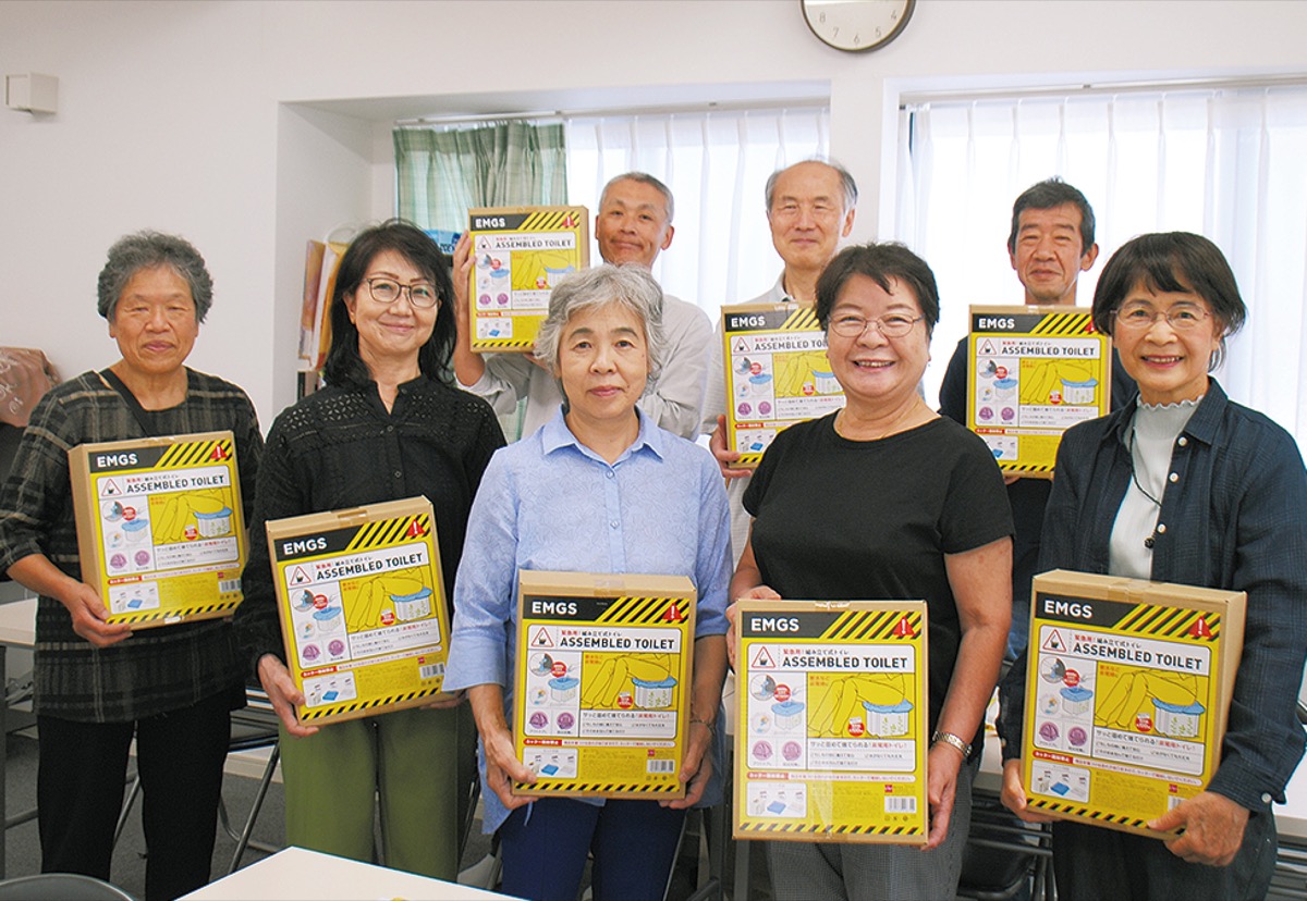 上の宮自治会(出雲春江会長)がこのほど、同自治会加入の全世帯向けに災害時などに使える「緊急用組み立て式トイレ」1600個を購入し、住民への配布を始めた。