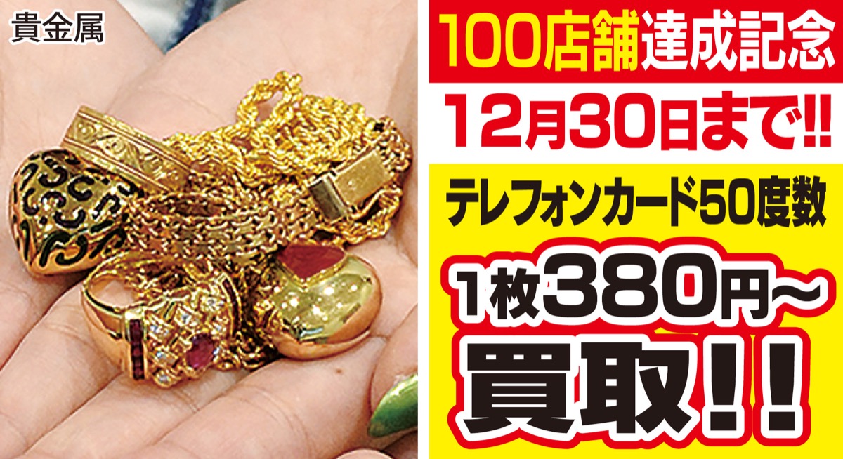 買取専門店「売るナビLICOPA鶴見店」は売るナビ100店舗達成記念として、テレフォンカードと貴金属の買取を強化。年末の大掃除で出てきたものをまとめ売りするチャンスだ。
