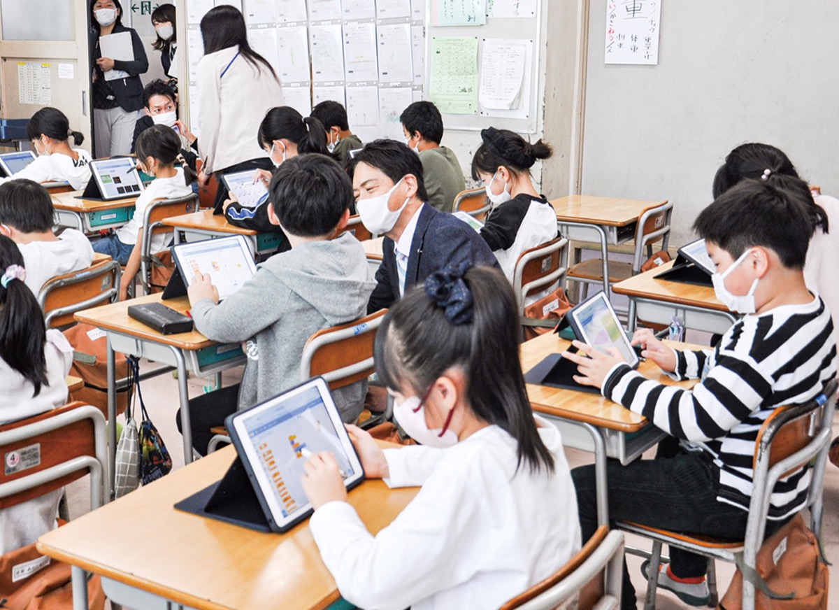 児童の一人、山野耀太郎さんは「自由にキャラクターを動かすことができるのが楽しかった。またやってみたい」と笑顔で話した。北村校長は「遊ぶように学ぶという学びの理想の形だと思う。民間の力を借りて学びの選択肢が広がり、大変ありがたい。ぜひ市内の他の学校にも広がれば」と語った。