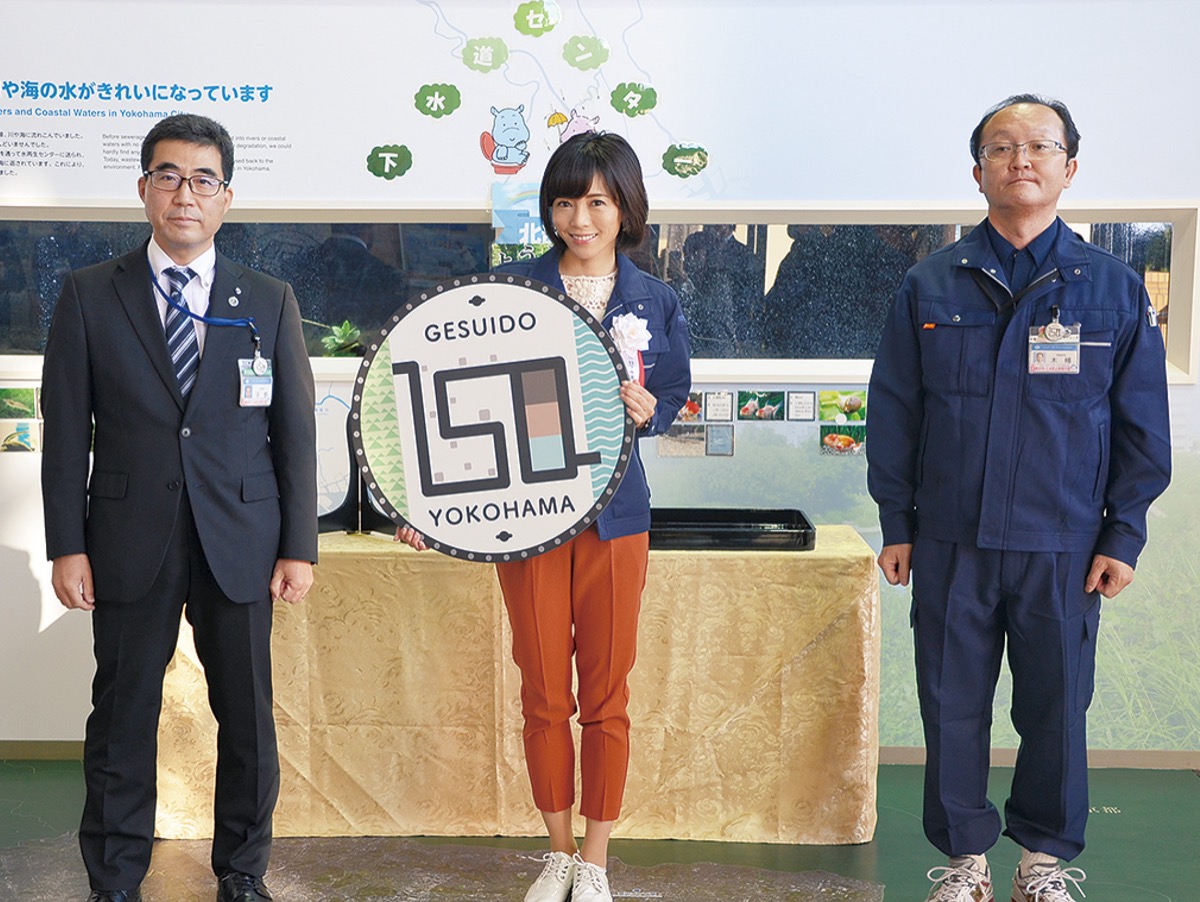 当日は、横浜下水道150広報大使を務める俳優の釈由美子さんが1日下水道センター長に就任し、40人が参加した同教室では参加者と共に施設見学などを行った。