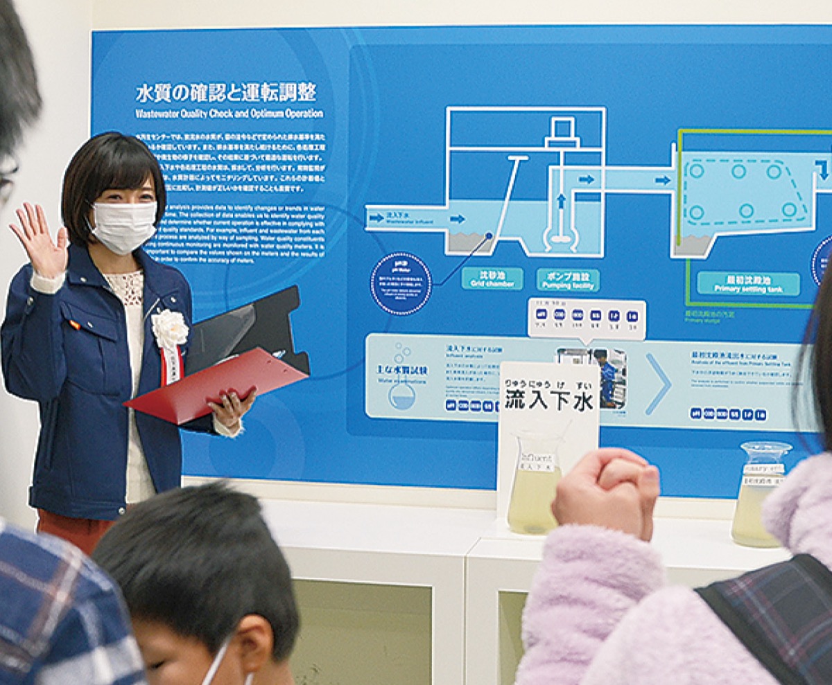 末広町の北部第二水再生センターでこのほど、「親子の下水道教室」が開かれた。