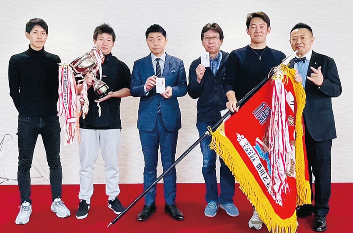 鶴見区内8チームで構成する横浜市草野球連盟クレインリーグの納会及び表彰式が昨年末に鶴見神社で行われ、連盟顧問や各チームの監督キャプテンら約40人が参加した。コロナ禍もあり、納会が鶴見神社で行われたのは3年ぶり。