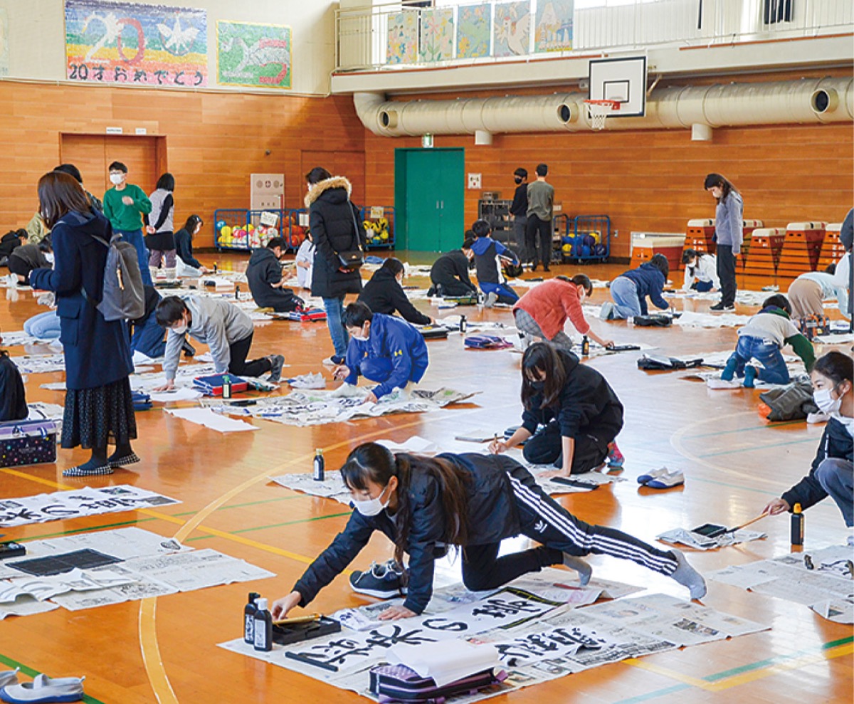 新鶴見小学校=江ケ崎町=で1月11日、地域の書家を招いて書き初めの授業が行われた。