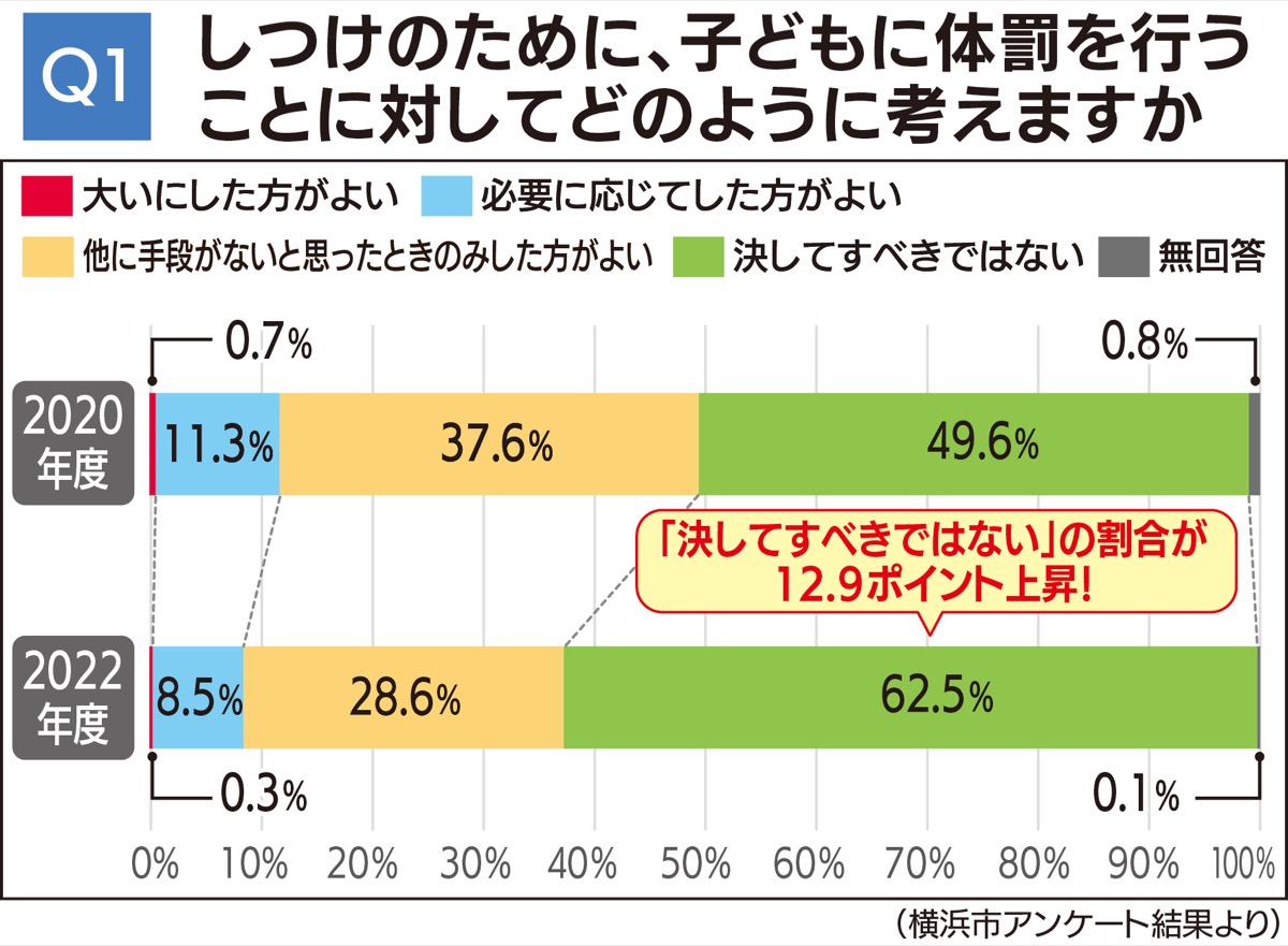 横浜市こども青少年局がこのほど、市民を対象に行った「子どもに対するしつけと体罰に関するアンケート」の結果を発表した。