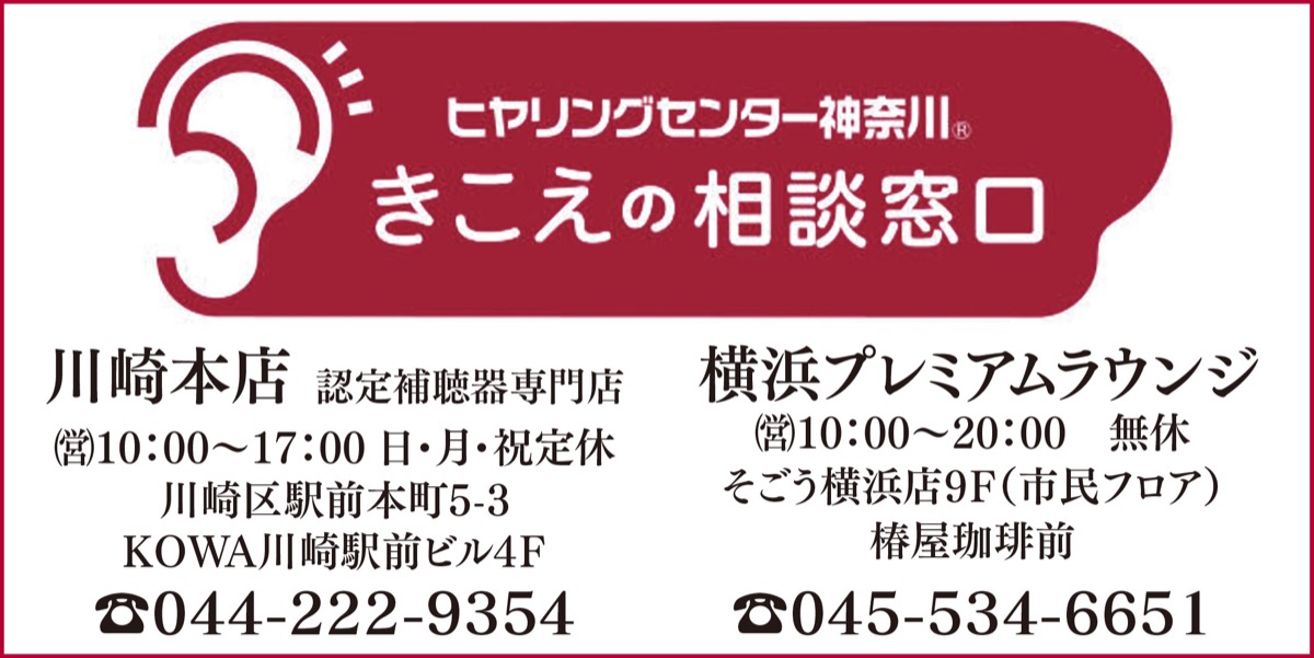 経験豊かな認定補聴器技能者が在籍する「ヒヤリングセンター神奈川」。川崎本店(川崎駅前)、横浜店(横浜そごう9階)で「オーダーメイド耳穴型補聴器、最大2メーカー、同時レンタル聞き比べキャンペーン」を3月31日(金)まで開催中。