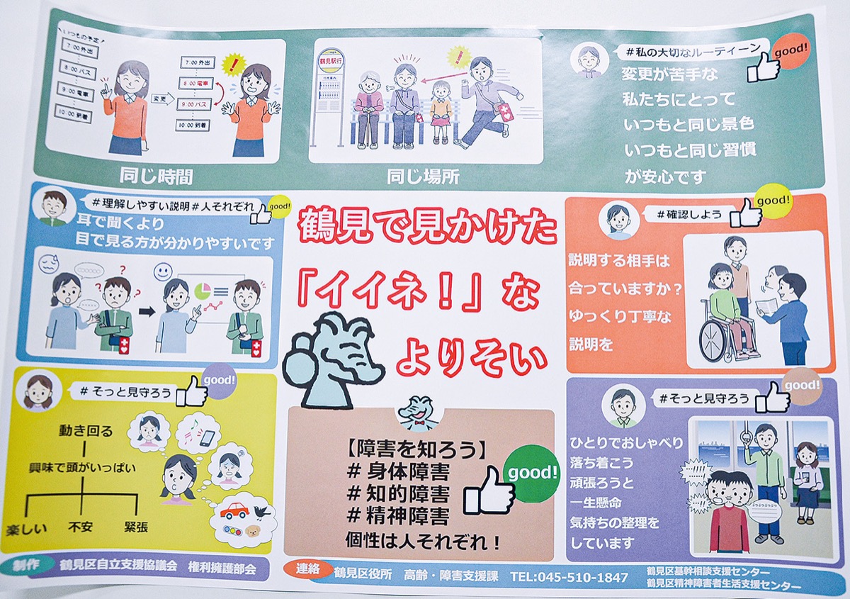区内18の障害福祉関係機関が参加する「鶴見区自立支援協議会」の権利擁護部会はこのほど、障害についての啓発ポスターを作製した。
