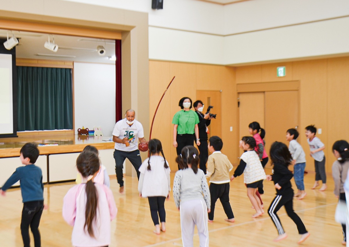 南米・ブラジル発祥の音楽を組み合わせた格闘技「カポエイラ」の動きを学びながら、アートとして表現する楽しさを体験する催しが3月16日、總持寺本町通保育園で行われた。