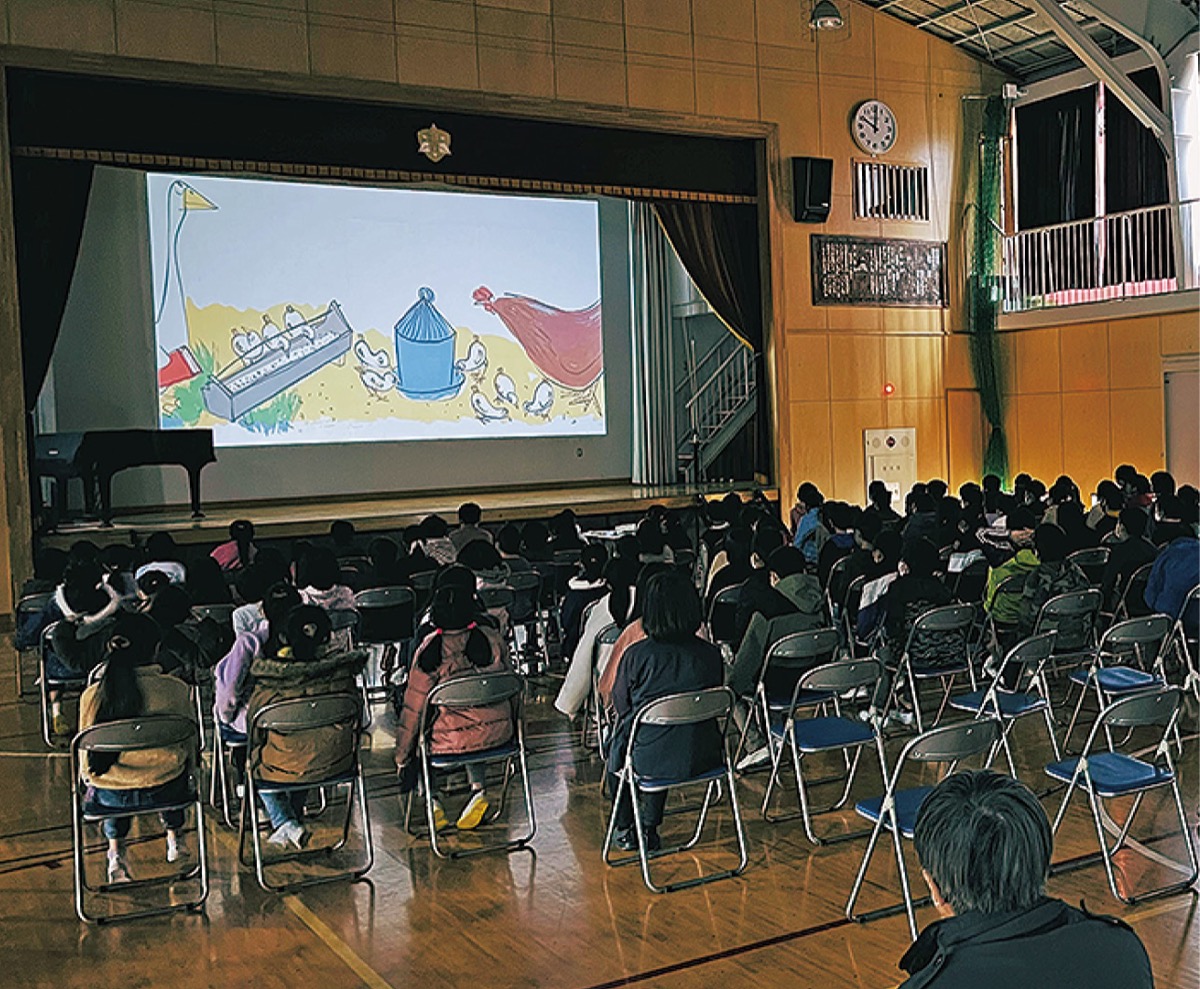 同ボランティアは20年ほど前に立ち上げたもの。コロナ禍の期間には、児童を集めて読み聞かせをすることが難しくなったため、見せ方をメンバーで相談。各クラスに設置されているテレビを使った放送や、低・中・高学年別に本を選んで編集した動画を体育館で上映するなど、工夫を凝らして活動を続けてきた。