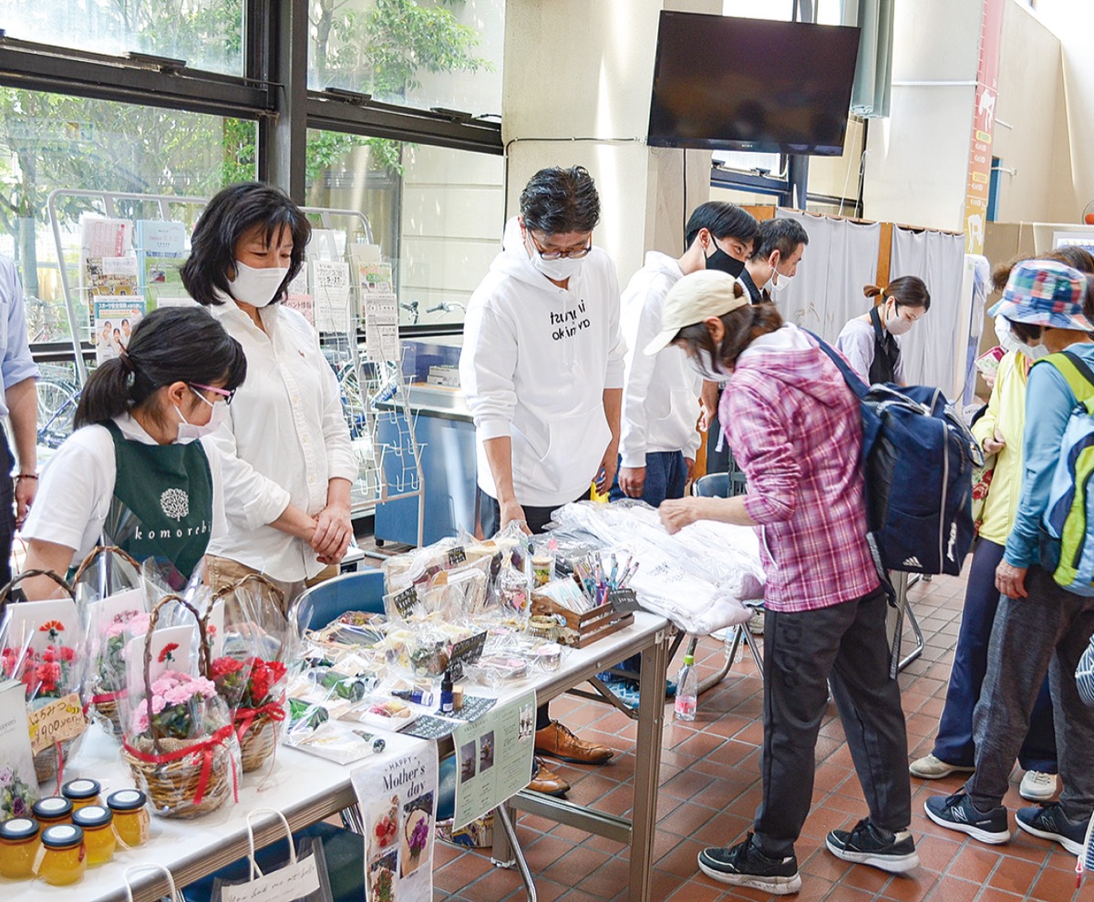 また11日には、営業再開に伴い、区内3つの福祉施設による物品販売会が初めて行われた。福祉活動の認知を高めたいとの思いから同館が協力したもので、会場内には各事業所の利用者が作ったクッキーやアロマオイルなどが並んだ。担当者は「このような販売会を通じて、少しでも区民の方に活動を知ってもらえたら」と語った。