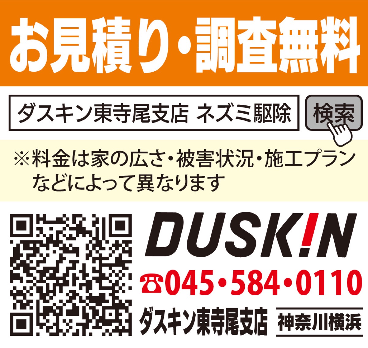 警戒心が強く夜行性のため、被害に気づきにくいのも特徴。築年数は関係ないという。同店では専門知識を持ったプロが駆除から寄せ付けない予防環境を作る。一部は今が繁殖期のため、音がする、フンがあるなど、気になる方は相談を。※受付平日のみ土日祝定休