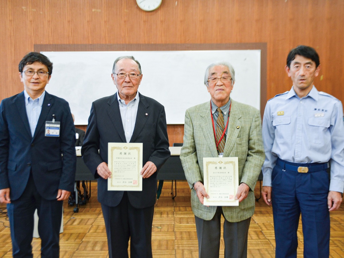 森田会長は「地域の見回りなど住民のみんなで協力し、日頃から積み重ねてきた成果」と喜び、土田会長は「火の用心の活動を毎月1回は行い、玄関先に(放火などの原因となりうる)紙類を置くことも減ってきた。今後もみんなで協力していければ」と語った。