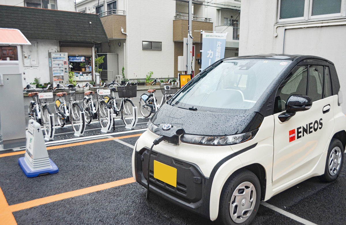 市場大和町に6月10日、超小型EVシェアサービスのポートを併設したシェアサイクルポートが開設された。