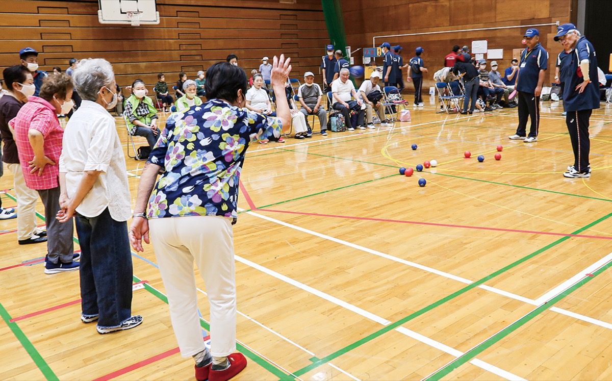 ボッチャは白い目標球に向けて交互に球を投げ合い、その距離を競い合うスポーツ。パラ五輪の正式種目だが、障害の有無に関わらず子どもや高齢者など、年齢や性別を問わずに楽しめるスポーツとして近年人気となっている。