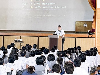 元木教授は視覚障害者が見えない、触れない大きな建造物などの形を触覚で知るツールとして、3Dプリンターで作った模型を紹介。生徒らは真剣に聞き入っている様子だった。取り組みについて元木教授は「これをきっかけに、少しでも視覚障害のことが目に留まるようになってくれれば」と語った。