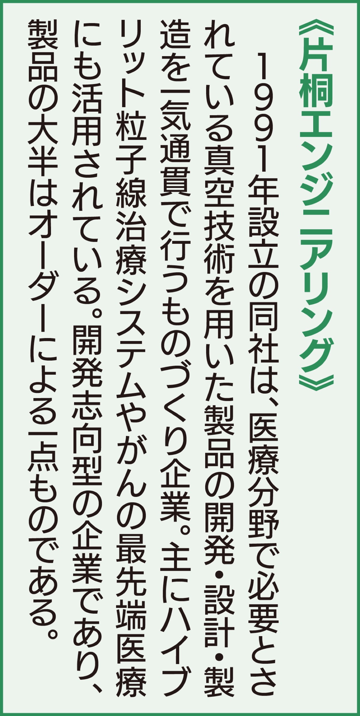先ごろは、医療分野などで用いられる「超高真空」の技術で存在感を示している片桐エンジニアリング(鶴見区尻手)を訪問=写真。