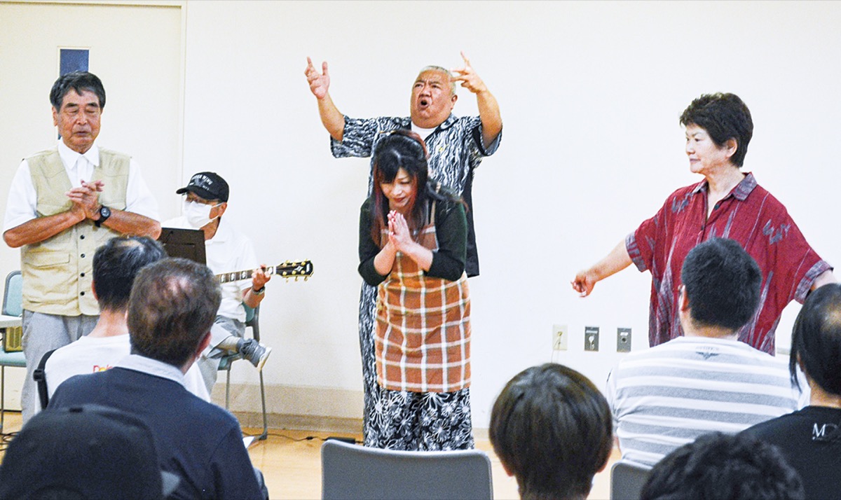 会議の後半では、「お笑いジーバー劇団」が登場し、実際にあった詐欺の事例を笑いを交えながら寸劇で披露。座長の梶朋広さんが詐欺師役を務め、電子マネーの購入を促す様子などを熱演して啓発を行った。