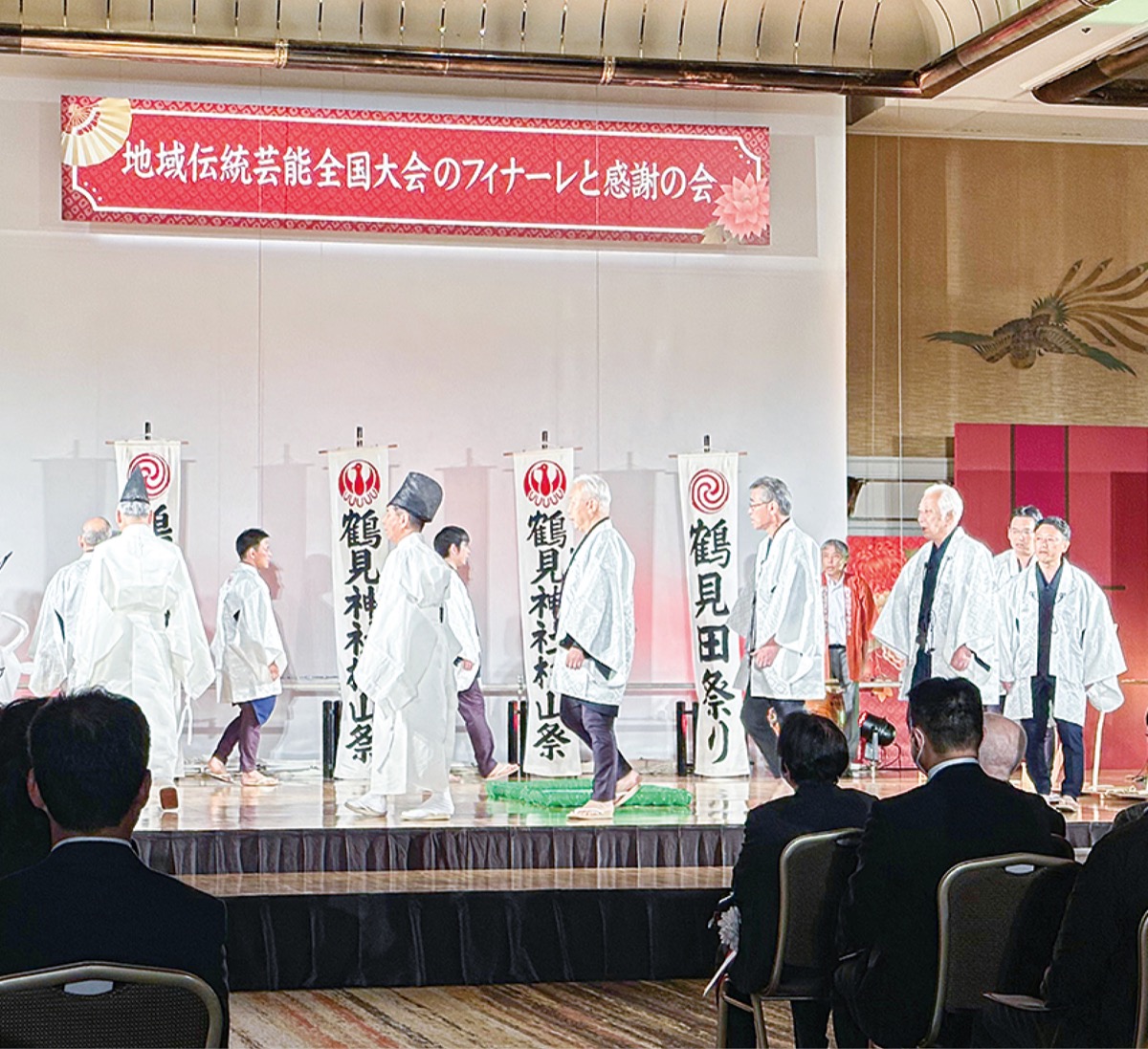 「地域伝統芸能全国大会のフィナーレと感謝の会」が9月9日に都内で開かれ、鶴見田祭り保存会(木佐美信行会長)が鶴見神社の民俗芸能「田祭り」を披露した。