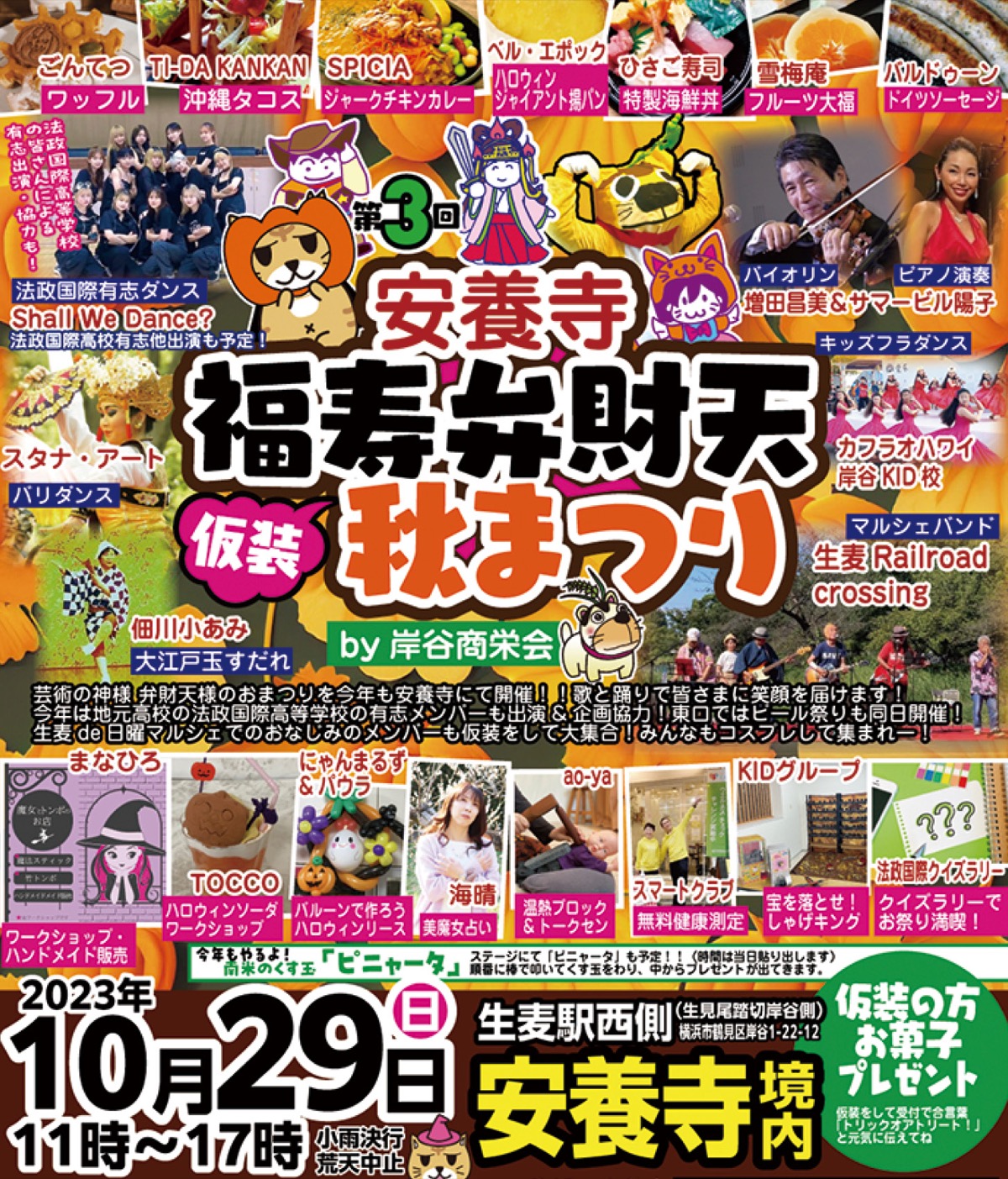 生麦駅西側の安養寺で10月29日、「第3回安養寺福寿弁財天仮装秋まつり」が開かれる。