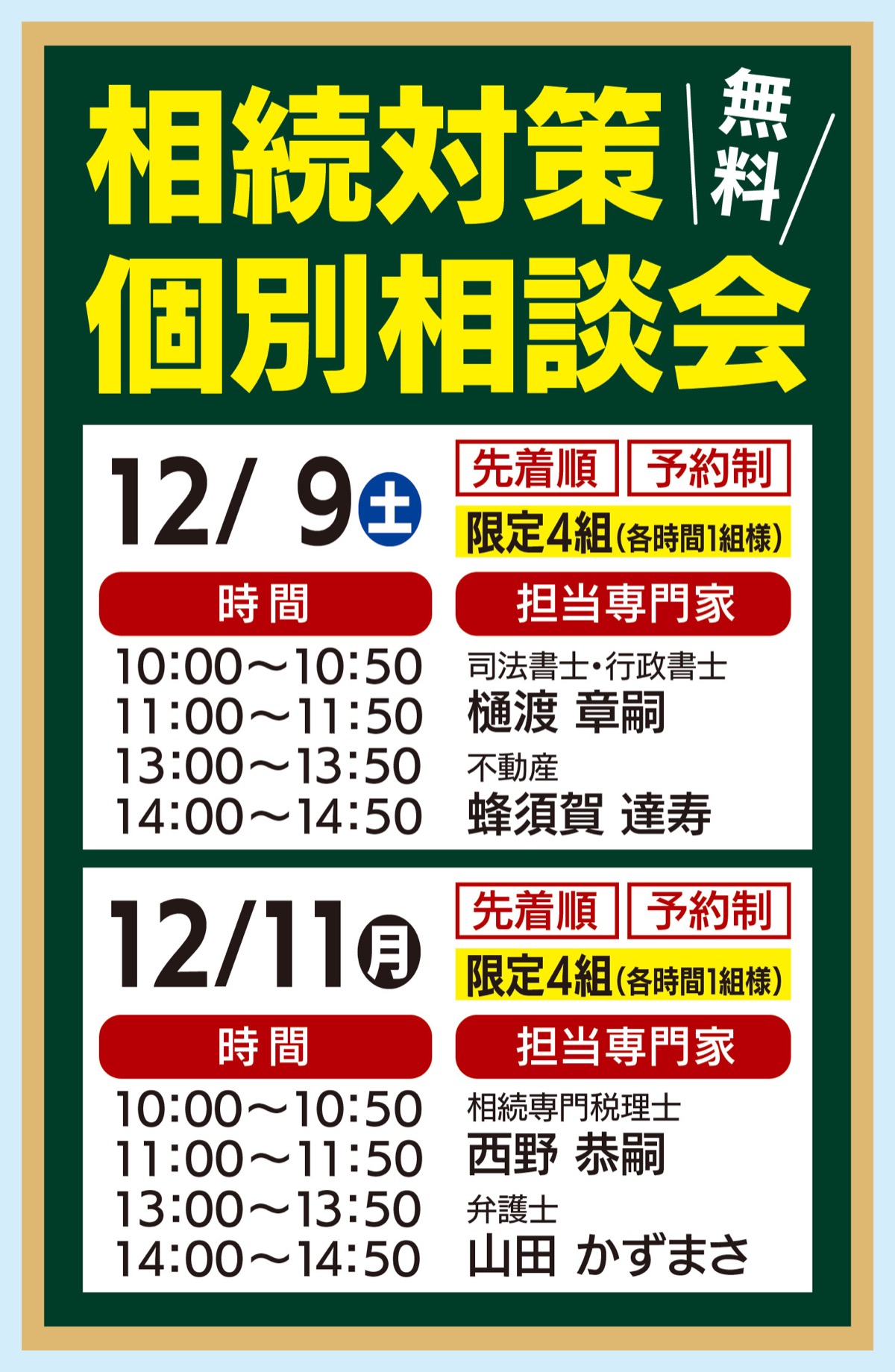 弁護士や税理士、司法書士らが参加 参加無料