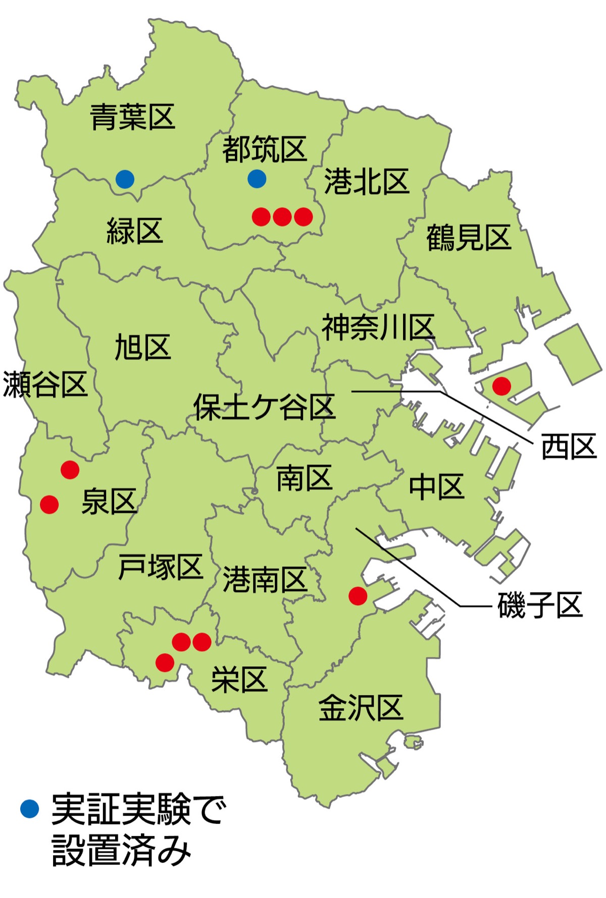 設置候補地は、鶴見区(大黒ふ頭中央公園前)、磯子区(杉田)、都筑区(勝田南に2カ所、仲町台)、栄区(柏陽高校校門側、同グラウンド側、大船駅笠間口)、泉区(和泉川沿い、泉図書館前)の10地点。充電器を置いても安全な場所や、充電中立ち寄れる場所がある利便性などを考慮し、設置可能な場所として選ばれた。