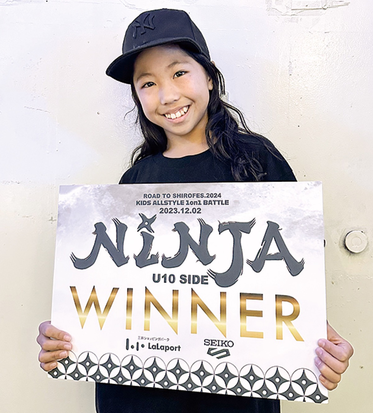 出場した大会は「キッズ1on1バトルNINJA」。同大会は、世界的にもトップレベルとされる日本のキッズダンスで、その頂点を決めるもの。渡井さんは10歳以下の部門に出場し、ブレイキンで挑戦した。