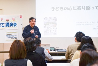 30年以上にわたり子どもの居場所づくりに尽力し、認定NPO法人フリースペースたまりば=川崎市=の理事長を務める西野博之さんの講演が2月17日、鶴見中央地域ケアプラザで行われた。