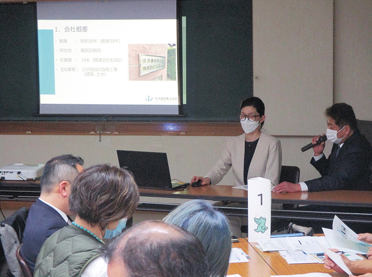 事例発表では、今井建設(株)=駒岡=の筒井主税さんらが登壇。横浜型地域貢献企業でプレミアム表彰企業にも選定されている同社が、「地域貢献への取組み」としてこれまで実施してきた活動などについて発表した。