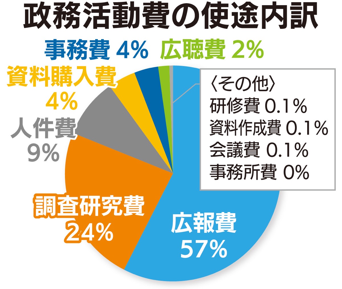 「裏金問題」で取り上げられた政策活動費は、政党から政治家個人に支出される政治資金の費目。一方、政務活動費は自治体予算から支出され、地方議員の調査研究その他の活動に資するため必要経費の一部として交付されるものです。