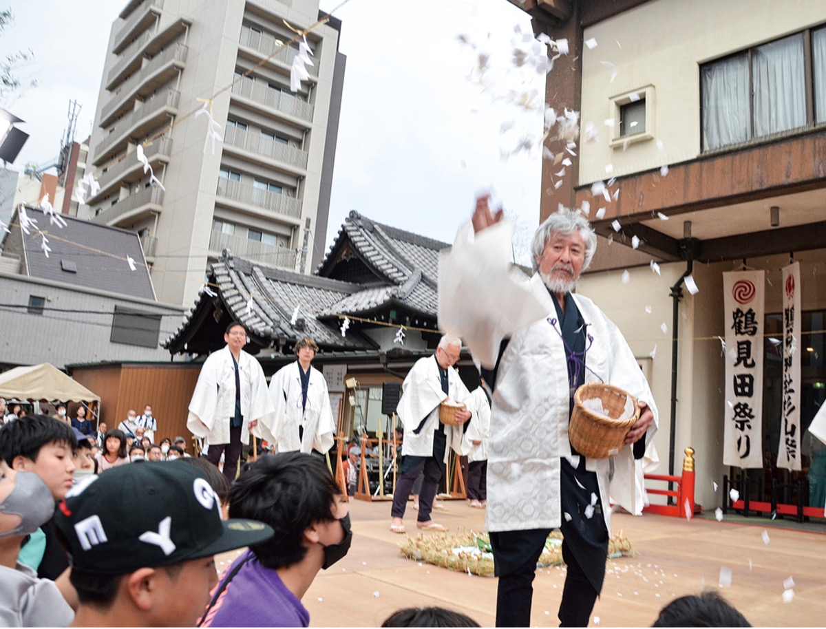 鶴見神社(金子剛士宮司)に鎌倉時代から伝わる横浜市地域無形民俗文化財「鶴見の田祭り」が4月29日に行われた。