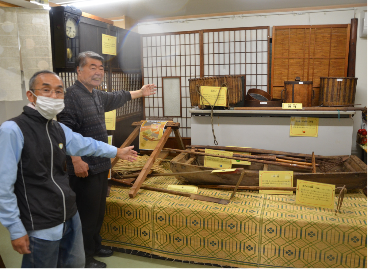 現在は昔の農業をテーマに、田舟や鍬などを展示中。同館スタッフは「新しく移り住んだ方や、この地域を深く知りたい人に一度訪れていただきたい。これからも展示を通じて、歴史を伝えたい」と話している。