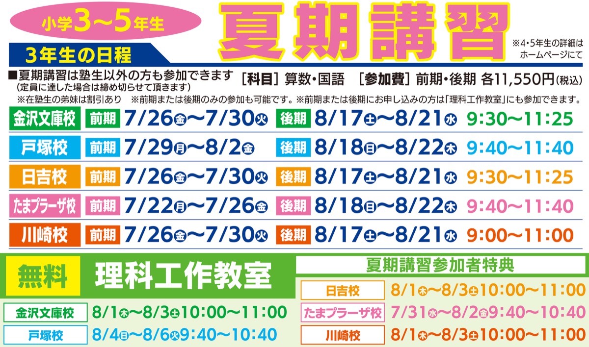 横浜市内に4教室、川崎市内に1教室 啓進塾 小学3年生~5年生 夏期講習募集 能力引き出す授業が人気