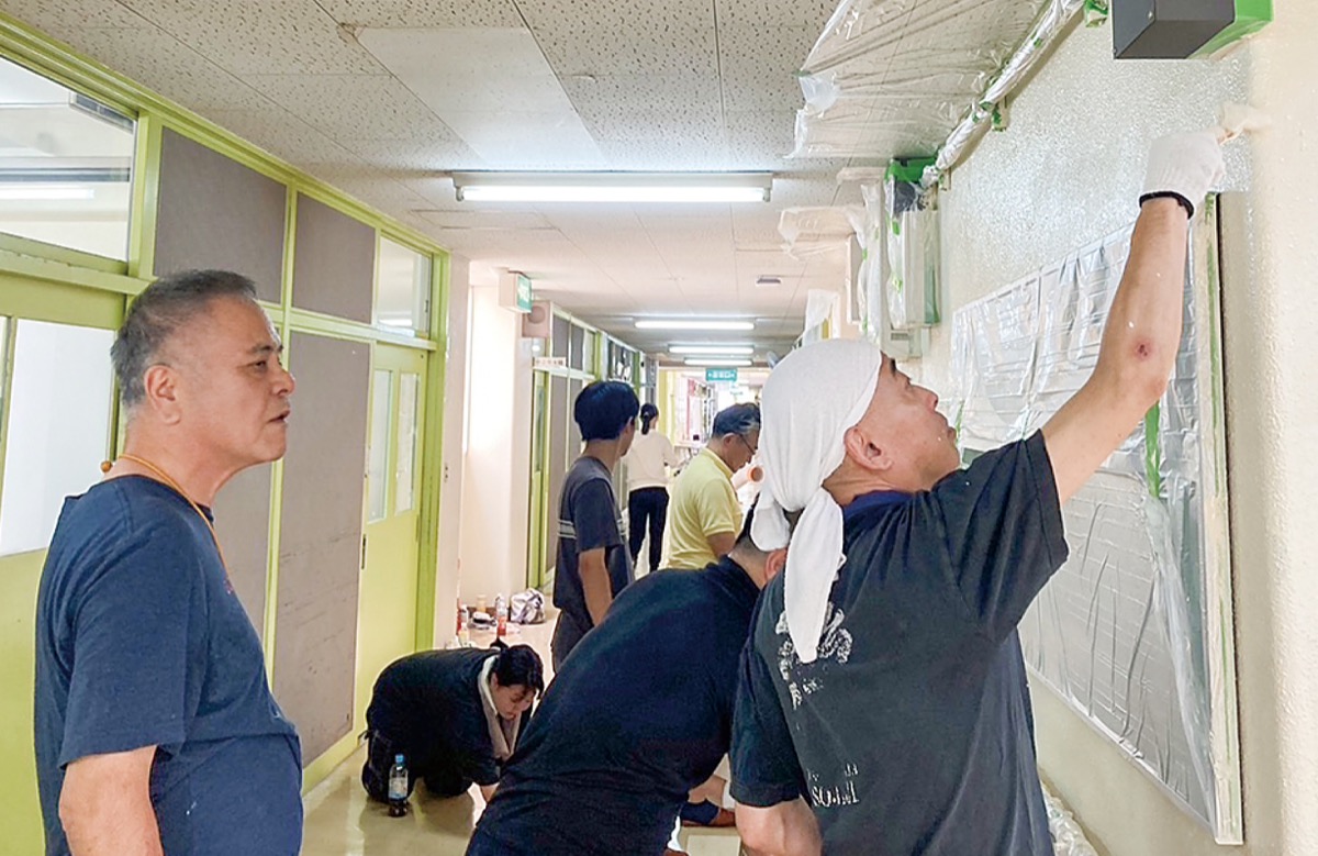 駒岡の県立鶴見支援学校で7月29日、同校保護者や学校後援会が校内のペンキ塗りを行った。