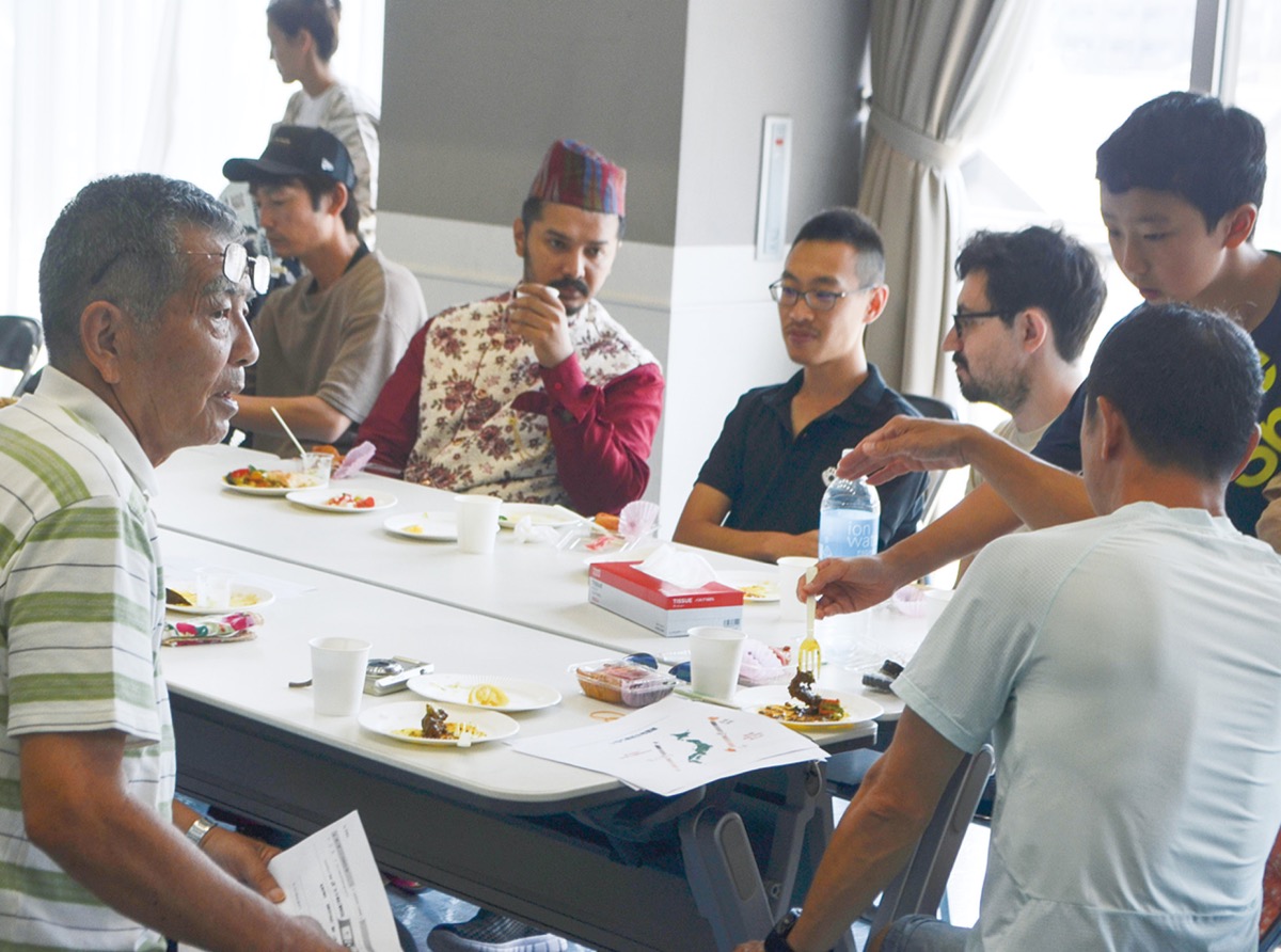 ネパール料理の紹介ではマトンカレーとアチャールという漬物を提供。食事の際のマナーとして、両手を使って食事をすることが同国では行儀が悪いということを伝えると、住民たちが文化の違いに驚いていた。