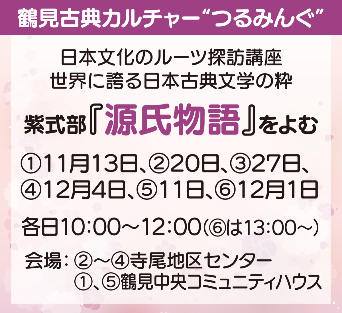 鶴見歴史の会らから成る団体・鶴見古典カルチャー「つるみんぐ」が、11月から『源氏物語』を読み解く第10期日本文化のルーツ探訪講座を開催する。