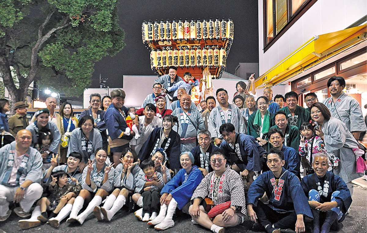 そして、夕刻には同神社の御輿(みこし)護持会「鳳友会」による万灯神輿が登場。この神輿は、同会結成30周年の際に同会の長澤昌之会長=「人物風土記」で紹介=が「矢向全域に幸せを運ぶことができれば」と主導して制作したもの。区内だけでなく川崎市幸区などからも担ぎ手が集まり、矢向駅を出発。矢向商店街などを巡りながら、神社を目指して威勢の良い掛け声がまちに響いた。