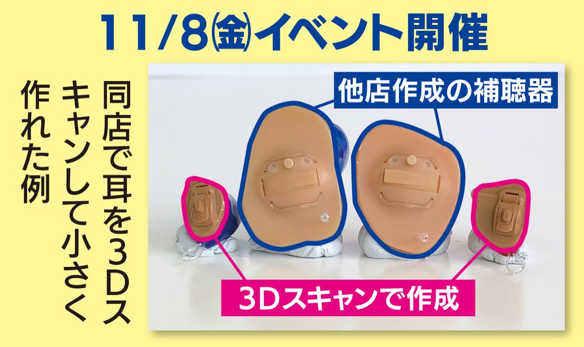 さらに11月30日(土)まで、オーダーメイド耳穴型補聴器の2週間レンタル無料キャンペーンを開催。耳の型を採って作成するオーダーメイドのため、形状も音質もすべて自分に合った補聴器を試すことができる。「せっかく購入する補聴器は失敗したくない」という人はぜひ体験を。